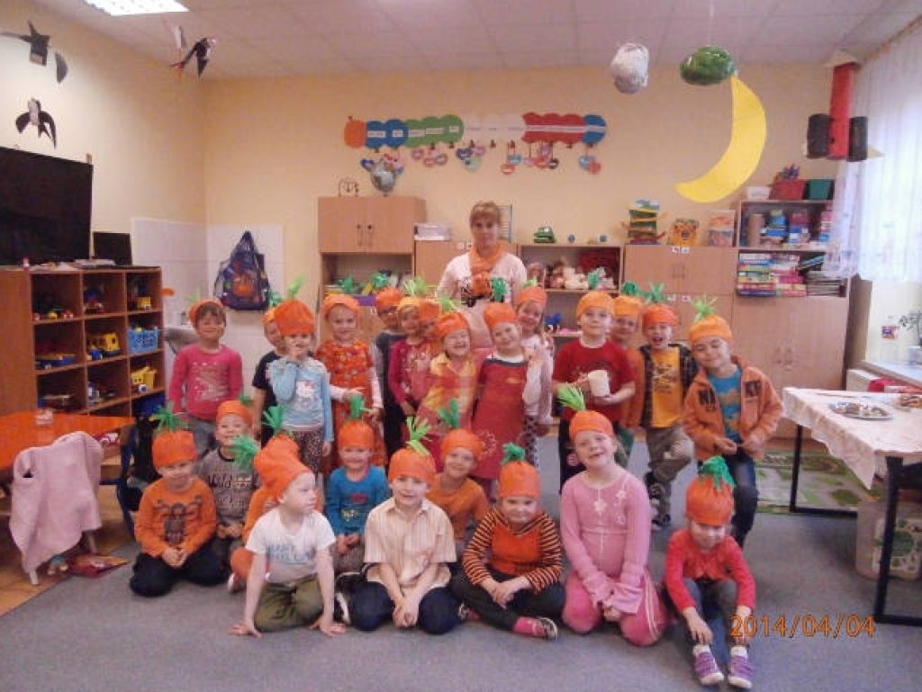 W dniu 4 kwietnia przedszkolaki wesoło obchodziły nietypowe "święto" jakim jest Dzień Marchewki. Podczas zajęć ubrane na pomarańczowo maluchy miały okazję poznać właściwości i zalety głównej bohaterki dnia – marchewki. Dzieci wykonały także marchewkowe czapki oraz rozpoznawały marchewkę za pomocą zmysłów. Poznawały również jej budowę, określały wielkość, a także przeliczały oraz tworzyły marchewkowe zbiory.