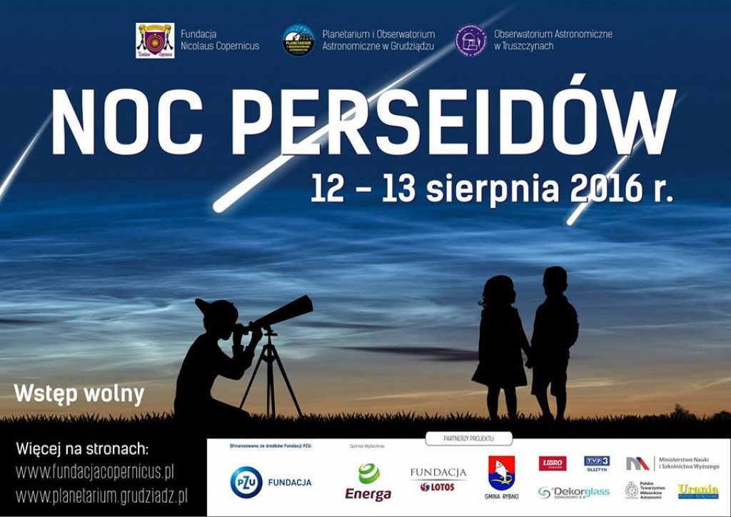 Zapraszamy na NOC PERSEIDÓW - piątek, 12 sierpnia 2016r. od godz. 11.30 w obserwatorium astronomicznym Truszczynach.