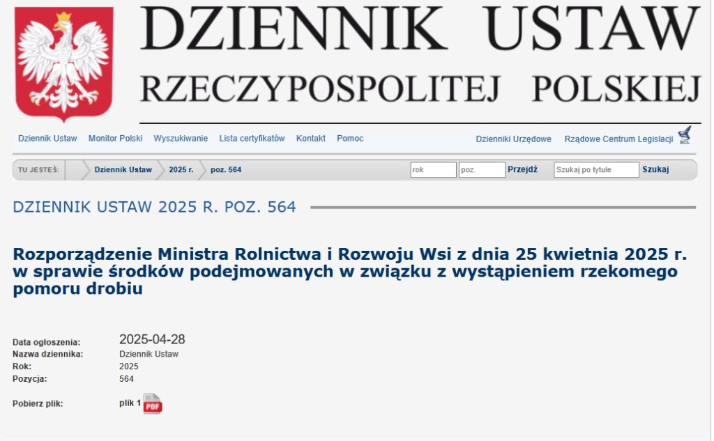 W związku z wystąpieniem przypadków rzekomego pomoru drobiu, Minister Rolnictwa i Rozwoju Wsi wydał rozporządzenie z dnia 25 kwietnia 2025 r., wprowadzające nowe środki bioasekuracji we wszystkich gospodarstwach utrzymujących drób.