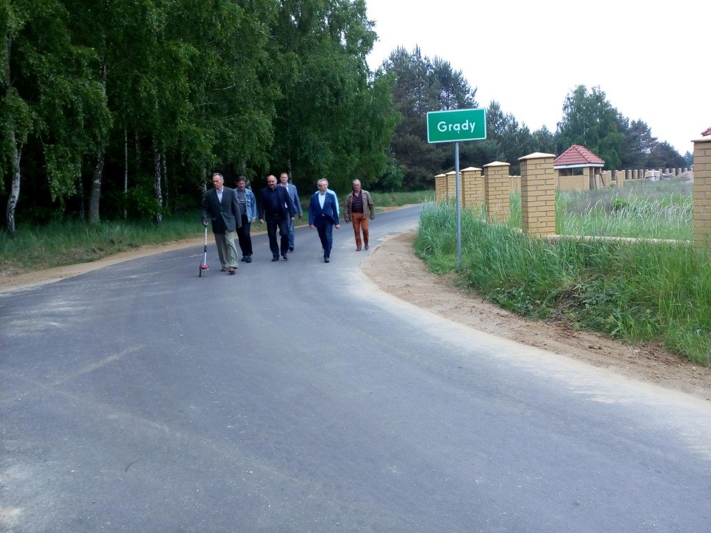 W dniu 18.05.2018 r. Wykonawca, Wójt, Sołtys Wsi Grądy, Przedstawiciele Starostwa i Inspektor Nadzoru dokonali odbioru drogi nr 185010N w Grądach. Komisji zostało przedstawione pismo Pani Radnej Gminy Rybno ws. nieprawidłowości dotyczących w/w drogi. Komisja po zapoznaniu się z pismem i omówieniu przedstawionych zarzutów oraz wizji w terenie nie potwierdziła informacji zawartych w piśmie. Długość odebranej drogi o nawierzchni asfaltowej wynosi 975 m. Koszt inwestycji 405 633,83 zł, który zostanie pokryty z Budżetu Gminy Rybno w kwocie 147 529,83 oraz z refundacji z programu PROW po pozytywnej kontroli i zatwierdzeniu wniosku o płatność w kwocie 258 104,00 zł
