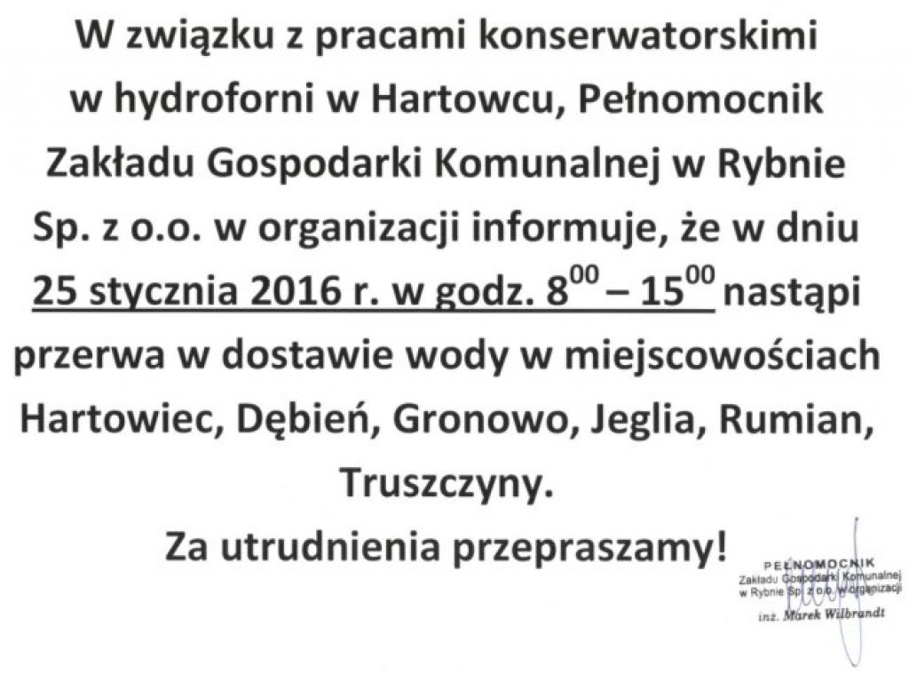 Ogłoszenie Zakładu Gospodarki Komunalnej