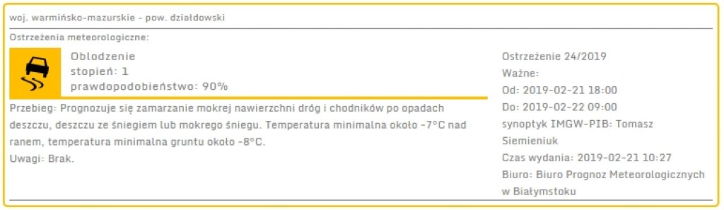 Ważność: od 2019-02-21 18:00 do 2019-02-22 09:00