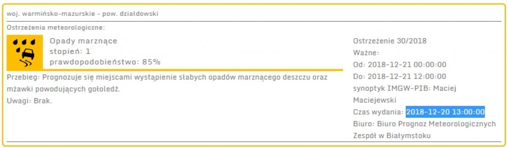 Ostrzeżenie meteorologiczne - opady marznące