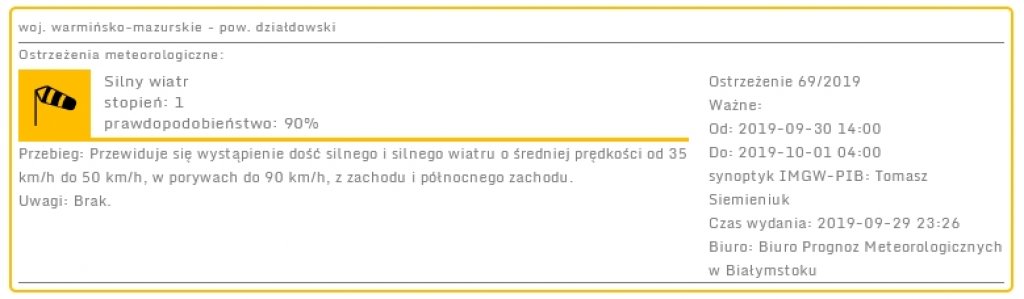 OSTRZEŻENIE Nr 69/2019
