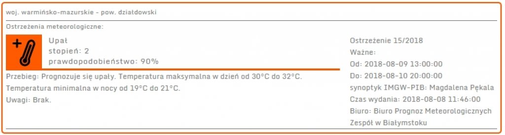 Instytut Meteorologii i Gospodarki Wodnej ostrzega przed upałem.