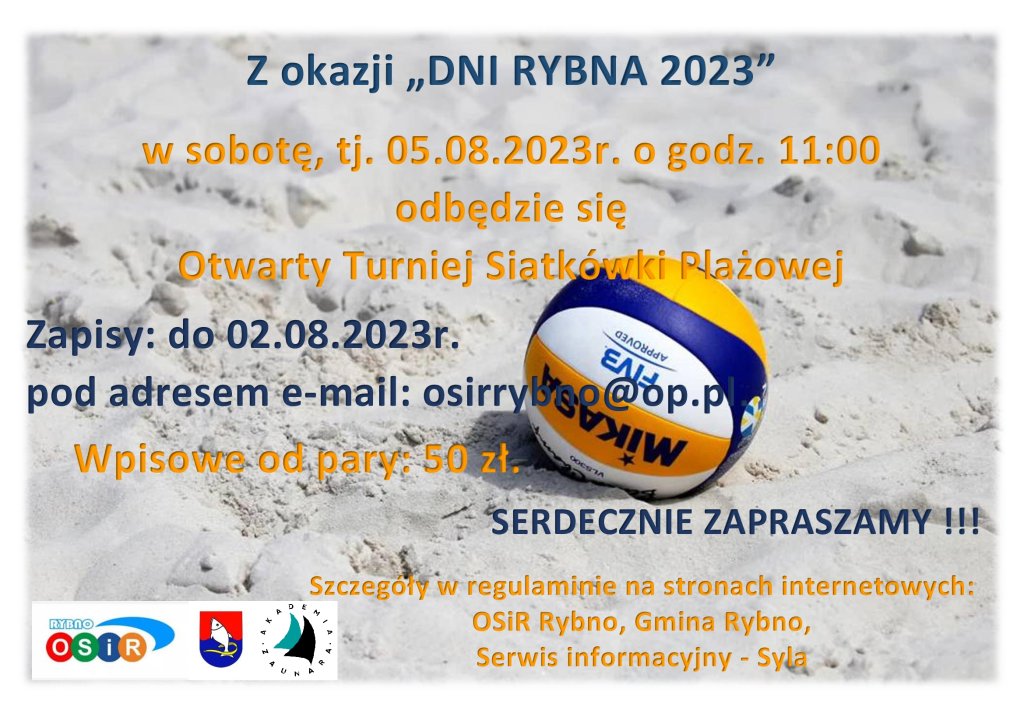 Ośrodek Sportu i Rekreacji w Rybnie zaprasza na Otwarty Turniej Siatkówki Plażowej z okazji "Dni Rybna 2023".