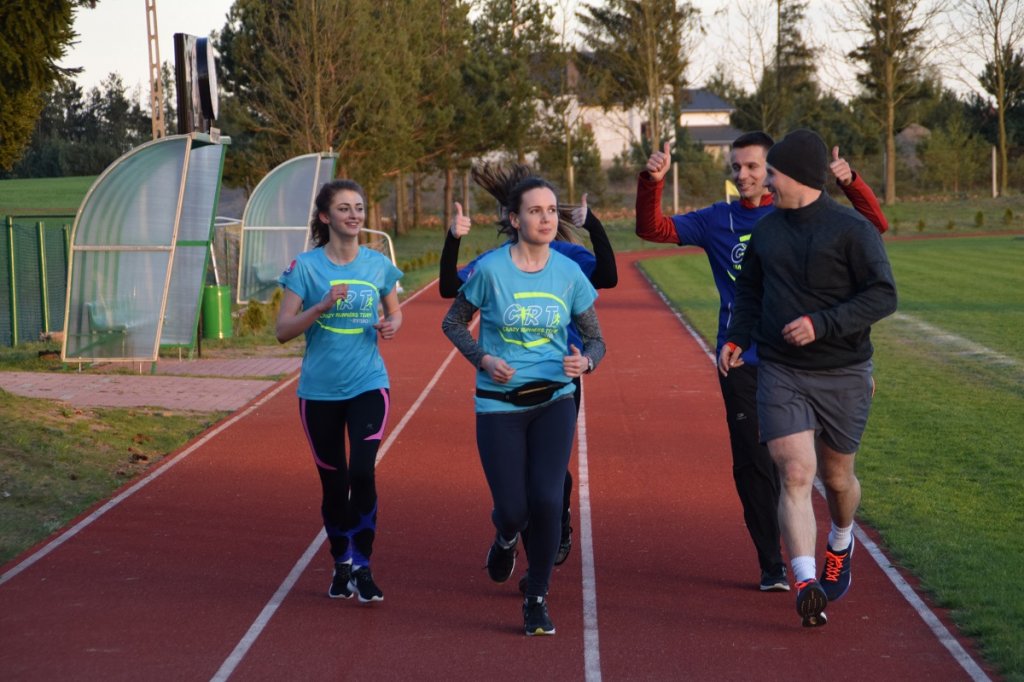 19 kwietnia minął pierwszy „roczek” grupy, którą stworzył zagorzały biegacz – Paweł Kaczmarski. Z tej okazji dla każdego członka zespołu została przygotowana niespodzianka w formie nowej klubowej koszulki. W piątkowy trening grupę „CRT” zaszczycił swoją obecnością także lider z zaprzyjaźnionej grupy z Ostaszewa – „Biegam U KOLESI” – Jacek Prokop. Zarówno Jacek jak i Paweł to zdecydowanie liderzy tych grup biegaczy – wspierają, motywują oraz są gwarancją wspaniałej atmosfery podczas treningów. Spotkania tych klubów, to nie tylko wspólne treningi, to także wspólne zawody oraz zabawy integracyjne. Już niedługo udostępnimy także wywiad przeprowadzony z Pawłem oraz Jackiem!