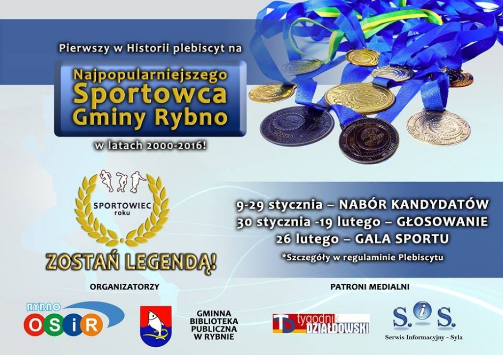 Rusza pierwszy w historii "Plebiscyt na Najpopularniejszego Sportowca Gminy Rybno w latach 2000-2016".
