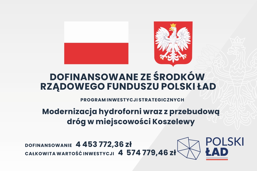 W dniu 28.03.2024 zostały podpisane umowy na realizację inwestycji pn.: „Modernizacja hydroforni wraz z przebudową dróg w miejscowości Koszelewy.”