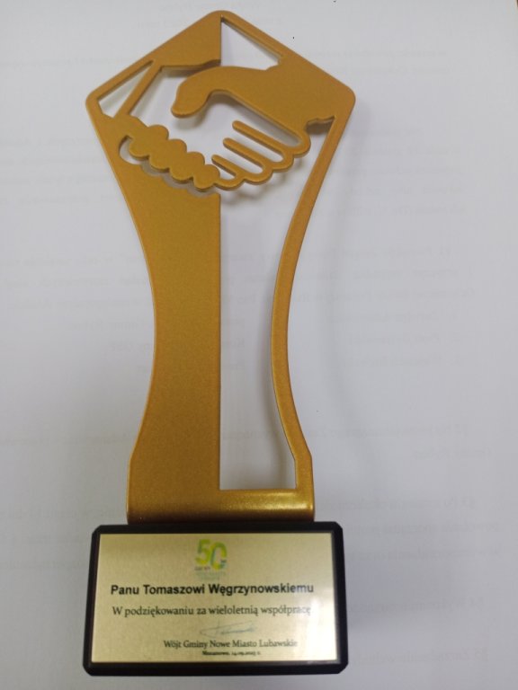 Podziękowanie od Wójta Gminy Nowe Miasto Lubawskie za wieloletnią dobrą współpracę.
