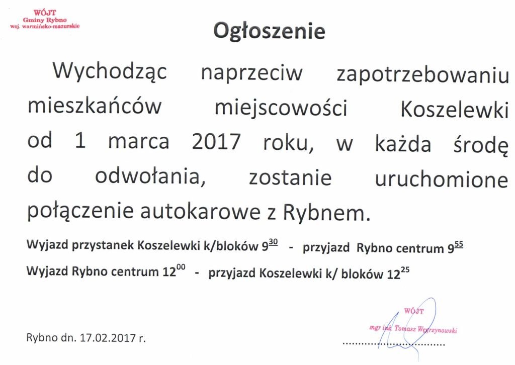 Połączenie autokarowe Koszelewki-Rybno