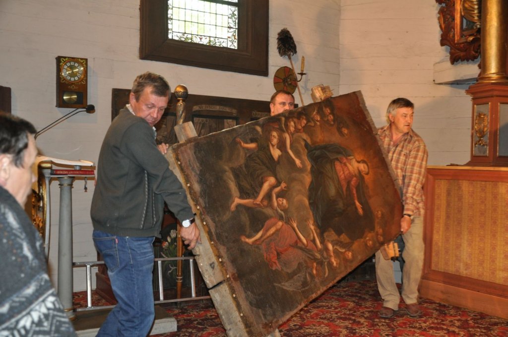 W pierwszym etapie prac zdemontowany i odkryty został przesłonięty przez główny ołtarz nie odsłaniany od kilkudziesięciu lat obraz z pierwszej poł. XVIII w. z przedstawieniem „Wniebowzięcia Najświętszej Marii Panny”. Jest to historyczne wydarzenie, będące początkiem kompleksowej renowacji i prac konserwatorsko – restauratorskich Kościoła parafialnego P.W. Świętej Barbary w Rumianie.