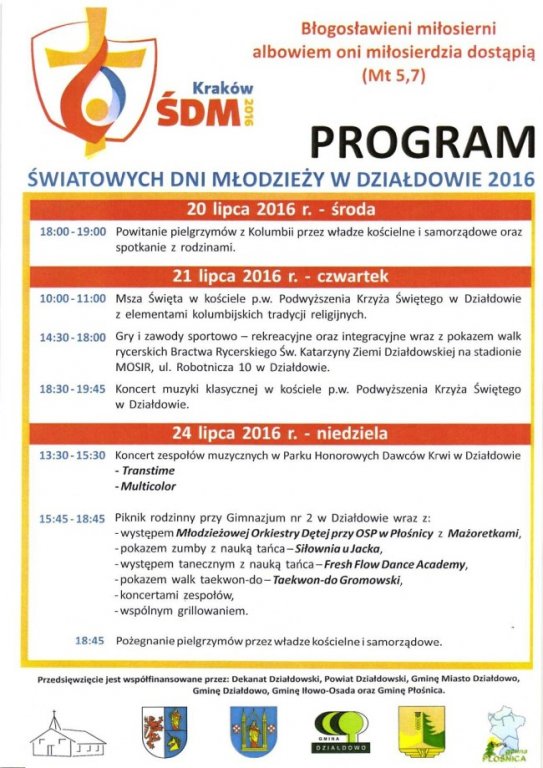 Program Światowych Dni Młodzieży w Działdowie.
