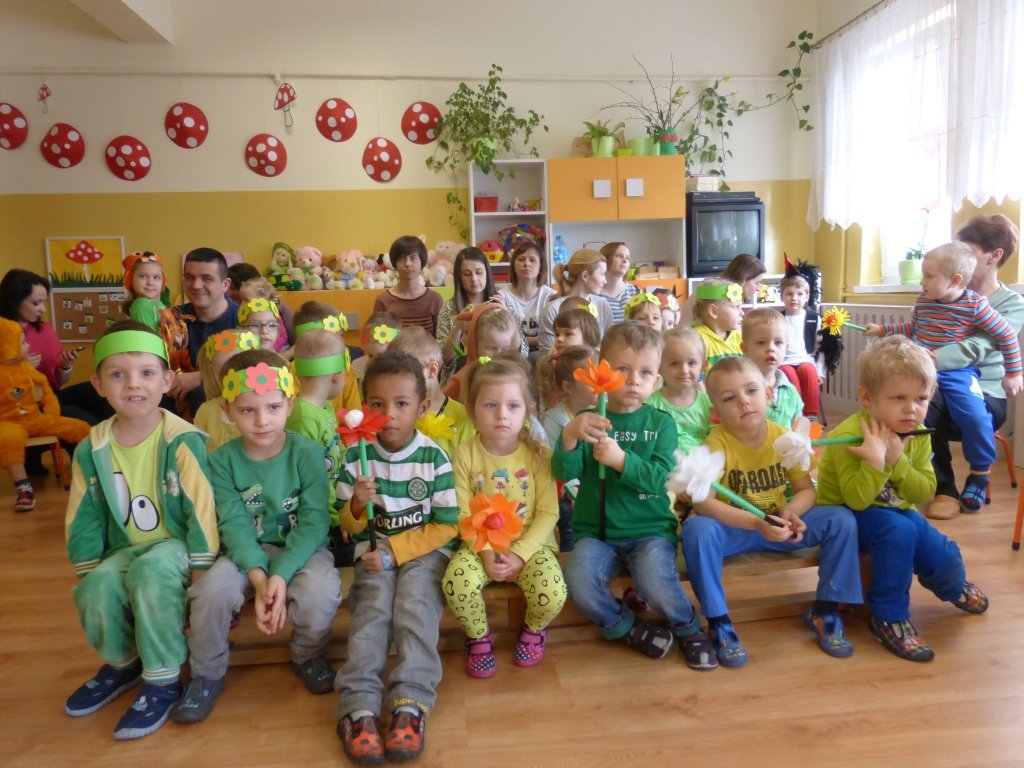 Na powitanie wiosny całe nasze przedszkole zamieniło się w zieloną łąkę: wszystkie dzieci i pracownicy przedszkola ubrali się na zielono, a w przedszkolu pojawiły się wiosenne dekoracje.