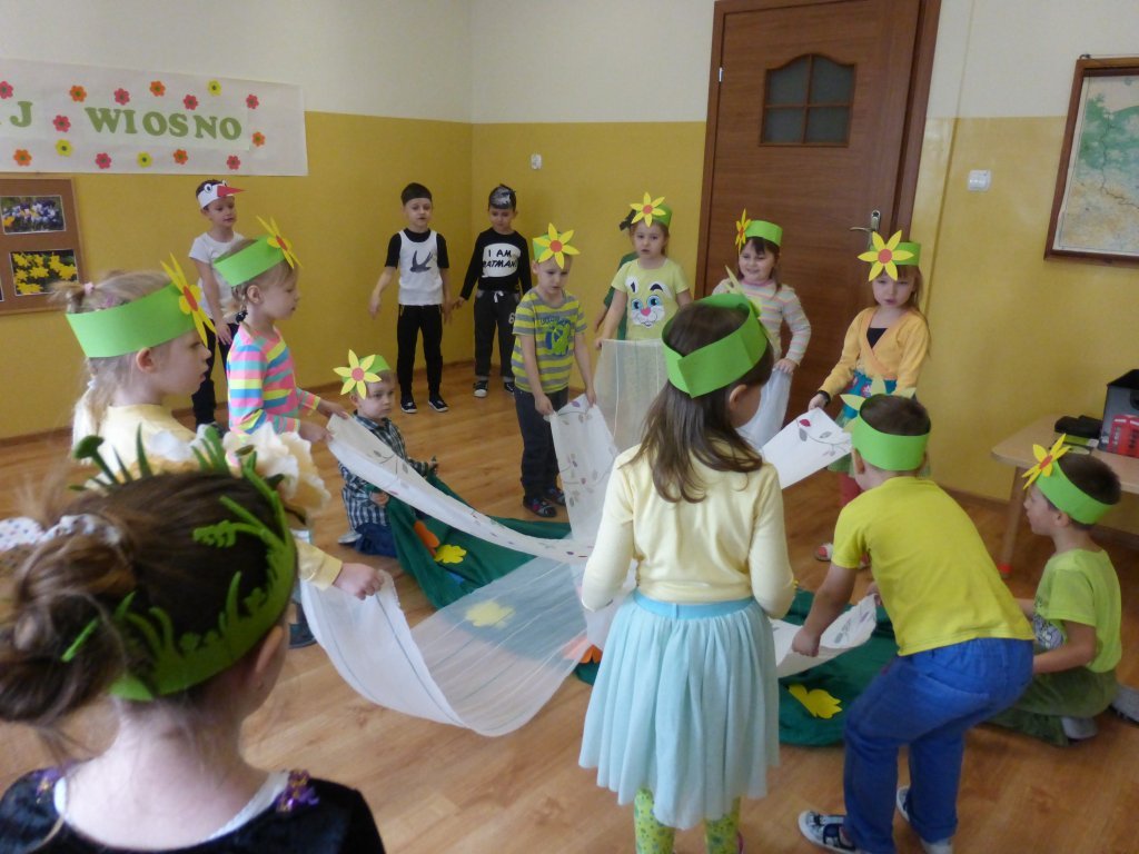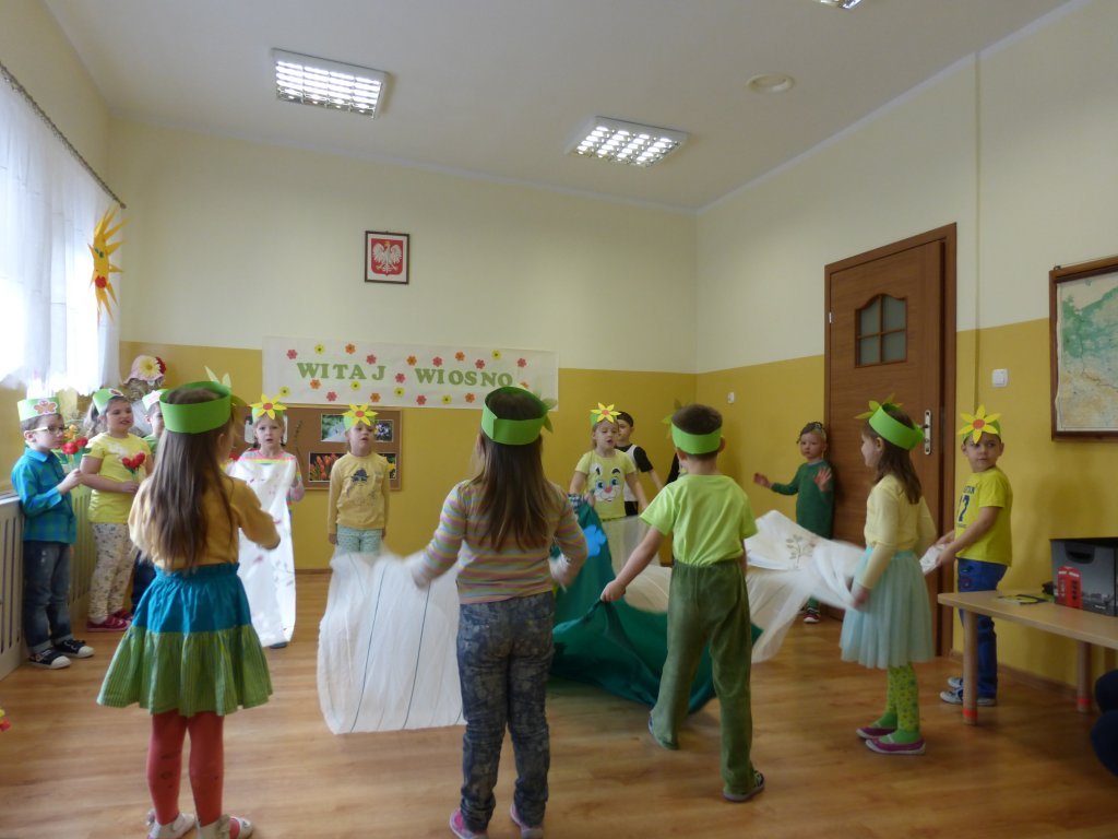 Pierwszy dzień wiosny jest więc ważnym wydarzeniem w kalendarzu przedszkolaków. W tym roku, na początek obchodów tego święta, dzieci zaprezentowały nauczycielom i rodzicom część artystyczną, na którą złożyły się wiersze, inscenizacja, piosenki i taniec zwiastujące nadejście wiosny. Potem wszyscy wybraliśmy się na uroczysty przemarsz, na czele którego szła Marzanna – symbol odchodzącej zimy. Dzieci, trzymając wiosenne kwiaty, wykrzykiwały hasła: „Żegnaj, zimo!”, „Witaj, wiosno!”.