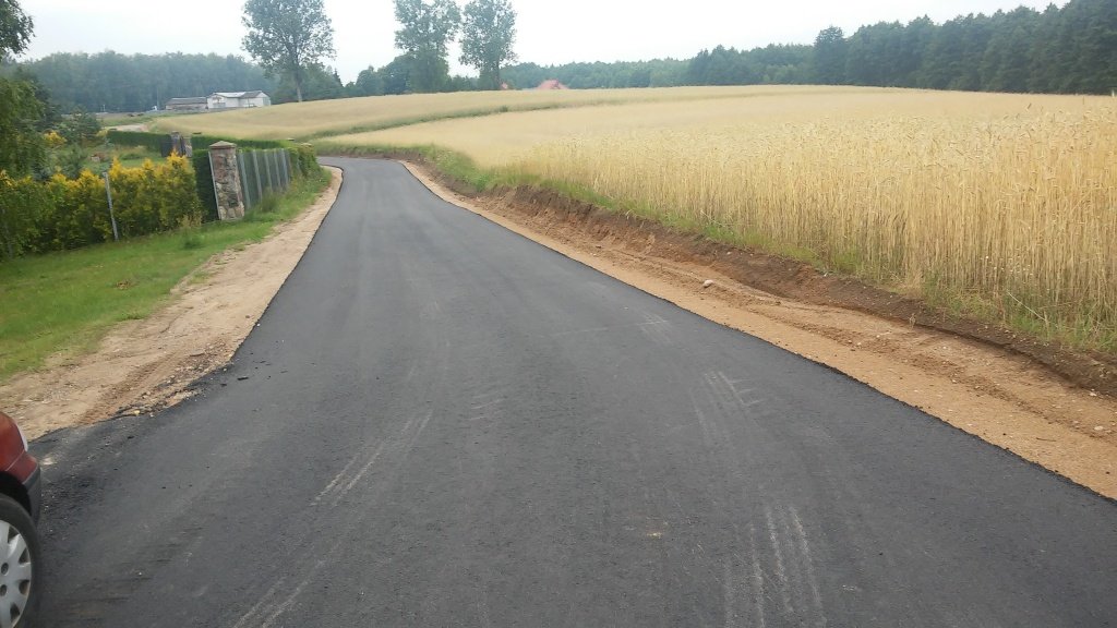 Od dnia 08.08.2017 r. obowiązuje stała organizacja ruchu. Mieszkańcy mogą jeździć po nowo wybudowanej asfaltowej drodze.