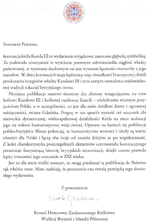 W związku z zbliżającą się koronacja Króla Karola III otrzymaliśmy od Konsula Honorowego Zjednoczonego Królestwa Wielkiej Brytanii i Irlandii Północnej publikację wydaną z okazji tego wydarzenia.