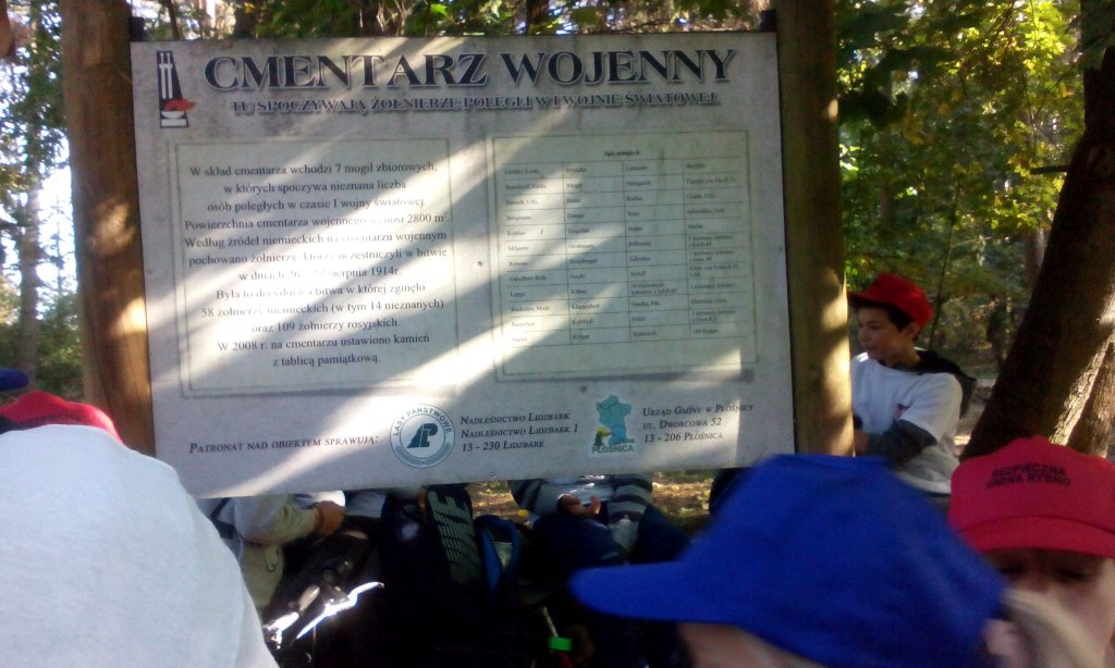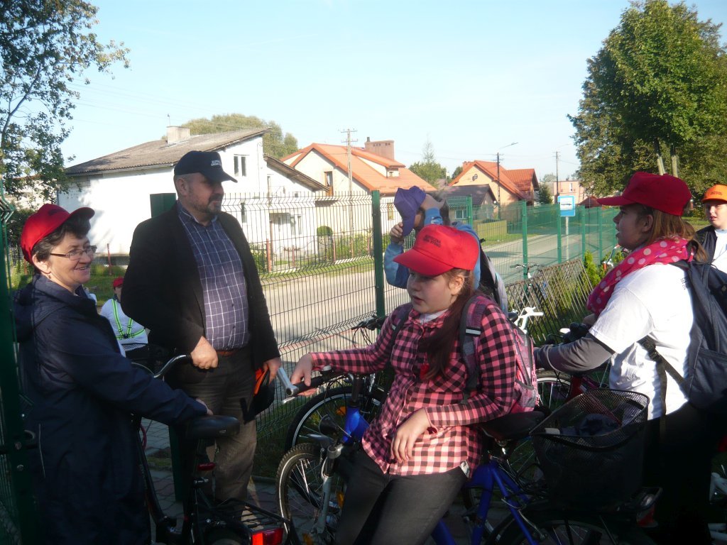 Uczestnicy otrzymali z rąk Pana Wójta Tomasza Węgrzynowskiego i Pani kierownik oświaty – Wiesławy Wróblewskiej pamiątkowe czapki i koszulki z hasłem programu „Bezpieczna Gmina Rybno”. Wyjazd był sprawdzianem podstawowych zasad poruszania się w ruchu drogowym grup zorganizowanych. Rajd odbywał się pod hasłem: „Śladami naszej historii” i prowadził na cmentarze z okresu I wojny światowej znajdujące się w pobliskich lasach. Uczestniczyli w nim uczniowie klas IV-VII, nauczyciele i rodzice. Rajd zakończony został integracyjnym ogniskiem. Wyjazd był bardzo udany, w przyszłości szkoła będzie promować ten typ ruchu. Z góry zapraszamy na kolejne wyprawy.