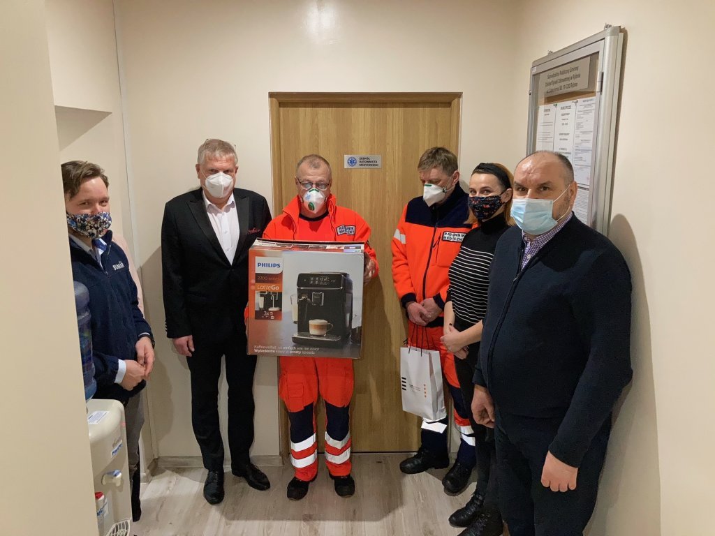 Państwo Marcinkowscy - właściciele firmy BUDMAR produkującej stolarkę aluminiową, ufudowali ekspres do kawy dla ratowników z Zespołu Ratownictwa Medycznego stacjonującego w Rybnie.
