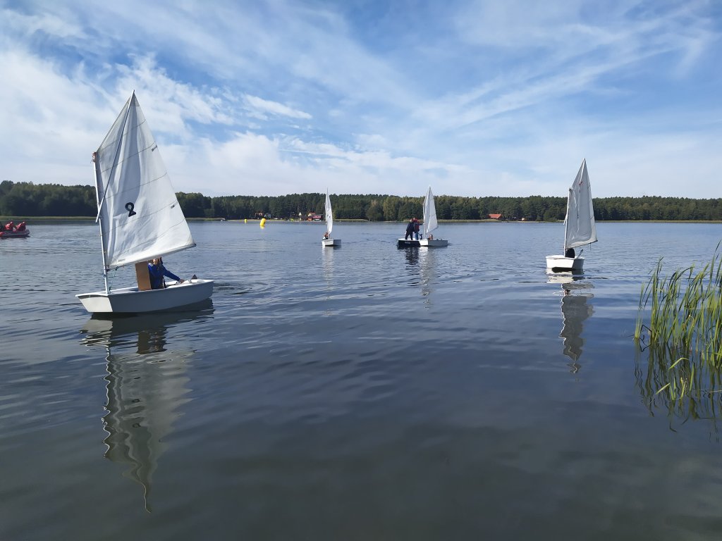 Piękna, jesienna aczkolwiek niezbyt żeglarska, bo prawie bezwietrzna aura pozwoliła na rozegranie 24 września 2022 roku IV otwartych regat żeglarskich Warmińsko – Mazurskiego Szkolnego Związku Sportowego o Puchar Wójta Gminy Rybno.