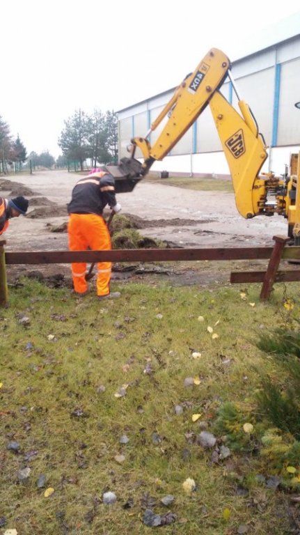 Wykonawca PDB Brodnica rozpoczął przygotowania do położenia asfaltu wokół Zespołu Szkół w Rybnie i OSiR.