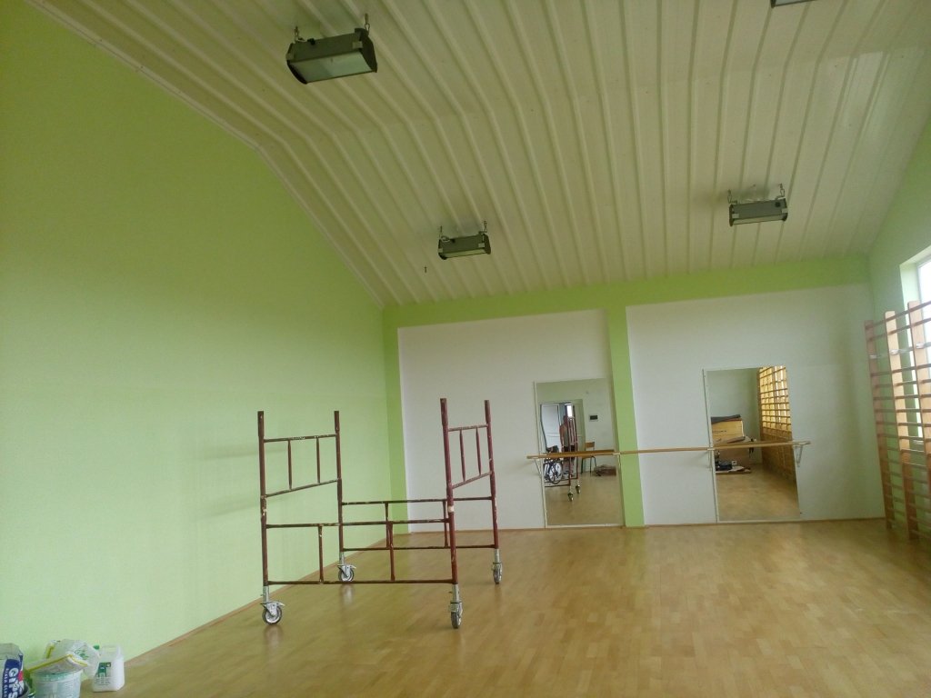 W ramach robót odnowiono salę pomocniczą, całe zaplecze socjalne sali (łazienki, przebieralnie) oraz hol.