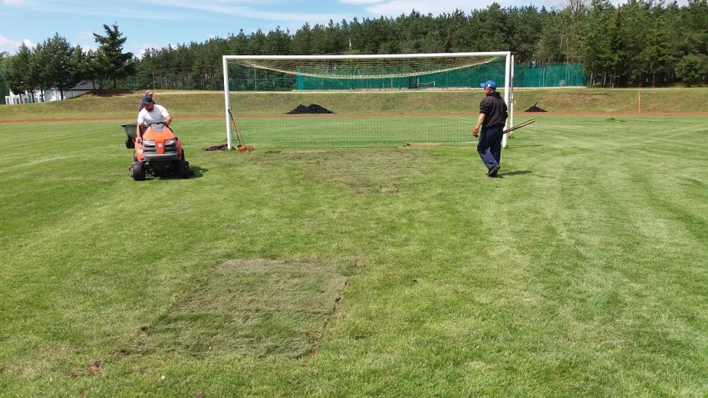 W dniach, 12-13 lipca na stadionie sportowym w Rybnie została przeprowadzona renowacja zużytej nawierzchni trawiastej.