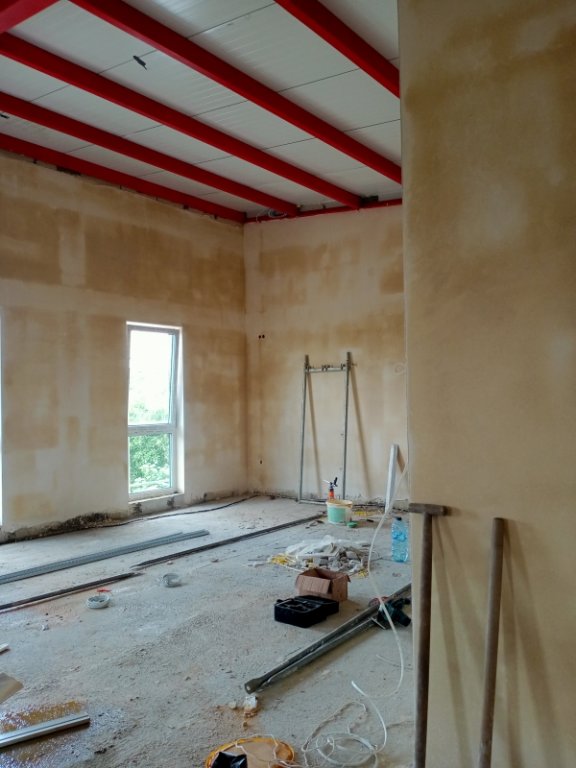 Zakończone zostały prace związane z instalacją elektryczną, dobiega końca tynkowanie ścian wewnętrznych.