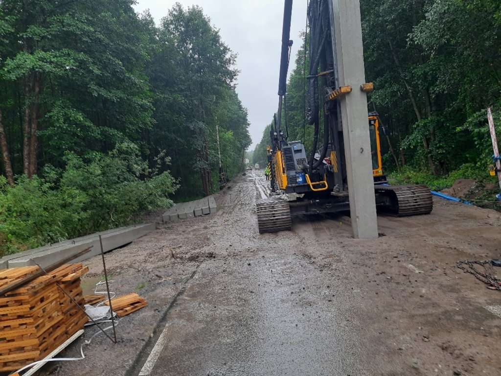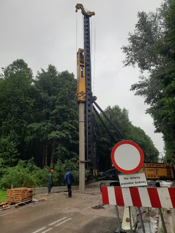 Pierwszy pal został wbity o godz. 9:30. Pale są ważnymi elementami konstrukcji nadającej nośność drodze i wymagają specjalistycznego sprzętu.