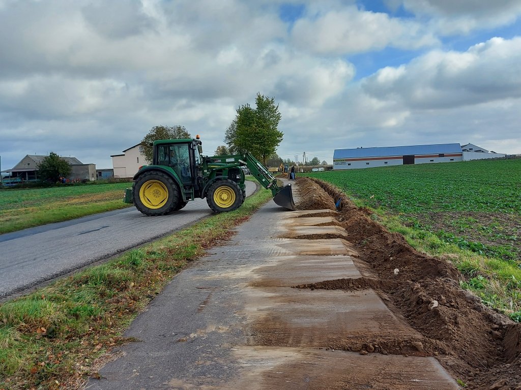 W ramach jednego z zadań do realizacji w ramach funduszu sołeckiego na rok 2021 w sołectwie Rybno mieszkańcy wspólnymi siłami wykopali a następnie położyli kable energetyczne, które niezbędne są do zainstalowania lamp na ścieżce pieszo-rowerowej z Rybna do Dębienia. Zadanie obejmowało część ścieżki od strony sołectwa Rybno.