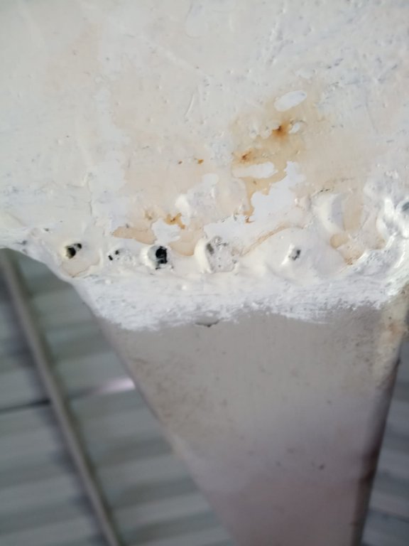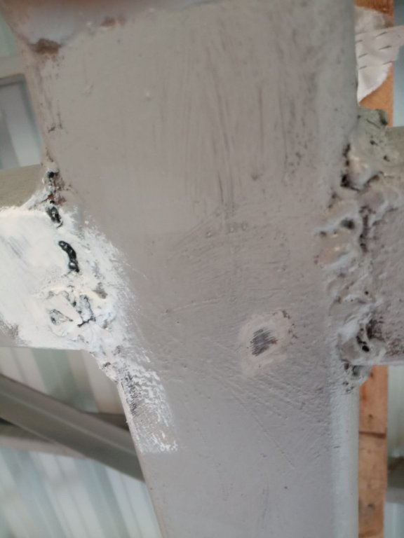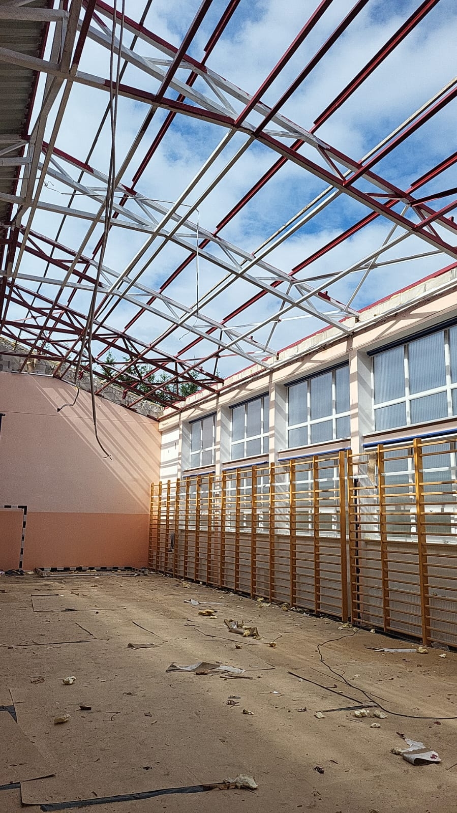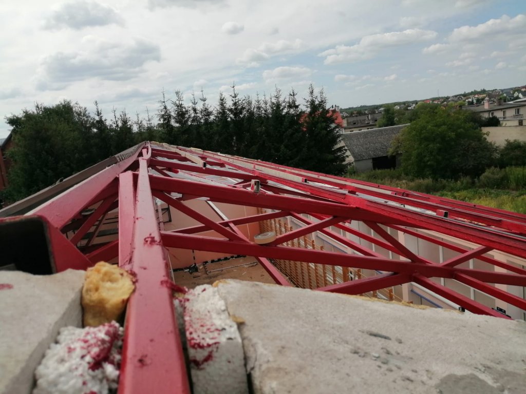 W związku z zagrożeniem jakie stanowiła konstrukcja dachu i liczne przecieki w poszyciu została ona wyłączona z użytkowania dnia 07.06.2021 roku. Poniżej przedstawiamy dokumentację fotograficzną z prowadzonych prac, gdzie widać nieprawidłowe spawy konstrukcji stalowej, brak zabezpieczenia przeciwogniowego i przeciwkorozyjnego.