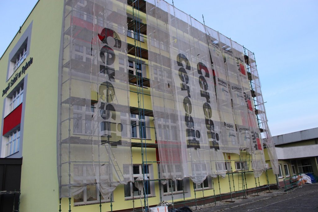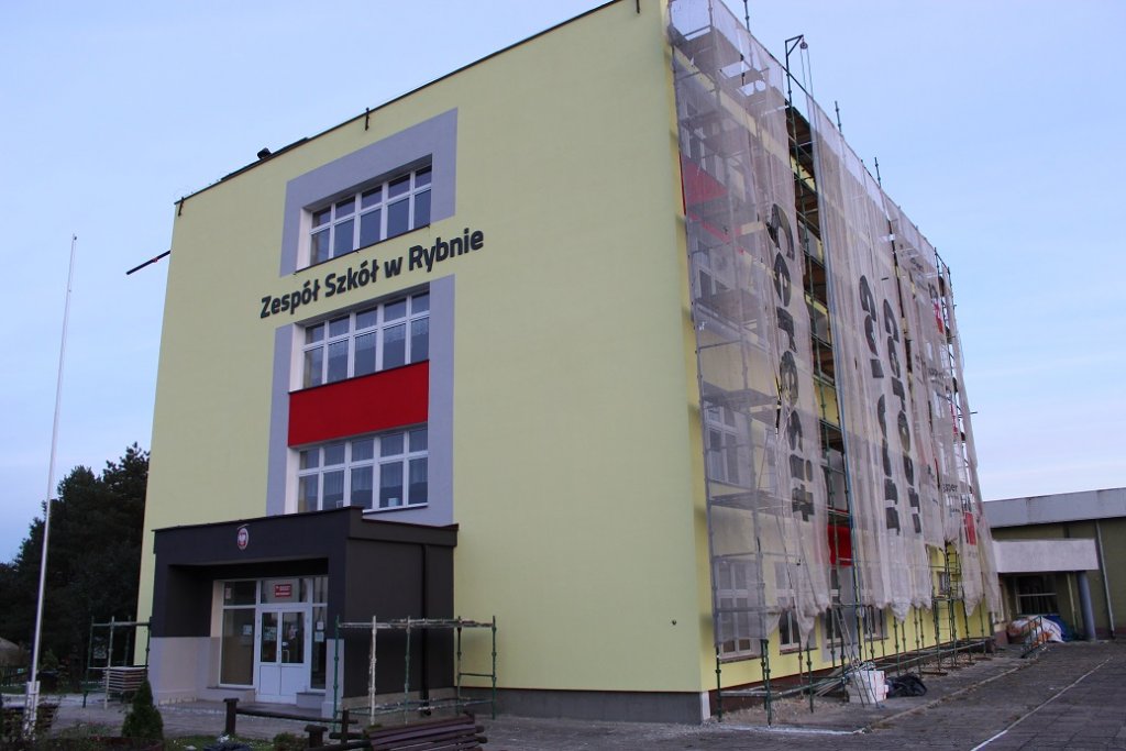 Trwa modernizacja energetyczna budynku Zespołu Szkół w Rybnie. Wykonawcą tej inwestycji jest firma Ogólnobudowlana Hart-Bud Marek Kowalkowski z Hartowca.