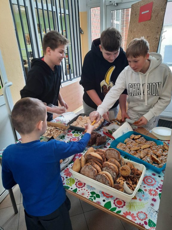 W czwartek, 9 marca 2023r. w Szkole Podstawowej im. Kawalerów Orderu Uśmiechu w Rybnie, Wolontariusze SK Wolontariatu z opiekunem zorganizowali "Kiermasz słodkosci" dla chorego chlopca z Zajączkowa - Ksawerego Markowskiego.
