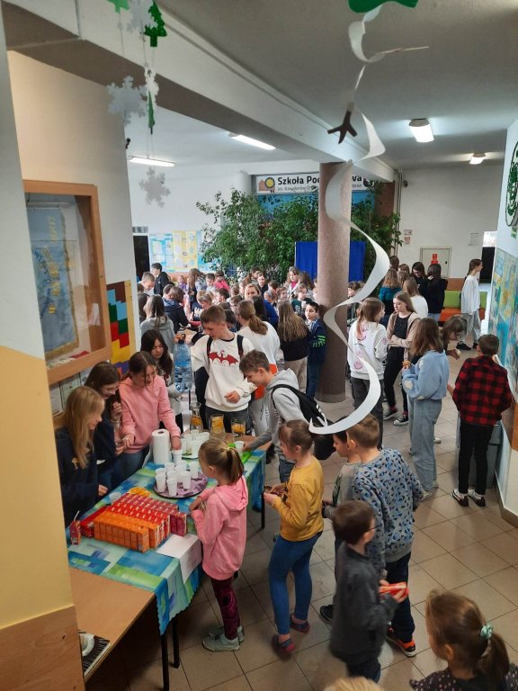 Tuż po 1 lekcji ruszyła sprzedaż słodkich wypieków, lemoniady i soczków. Akcja cieszyła się dużym zainteresowaniem i udało się zebrać 926,50zł. Przychód z akcji zostanie przekazany jako cegiełka Wolontariuszy Szkoły Podstawowej w Rybnie dla Ksawerego.
