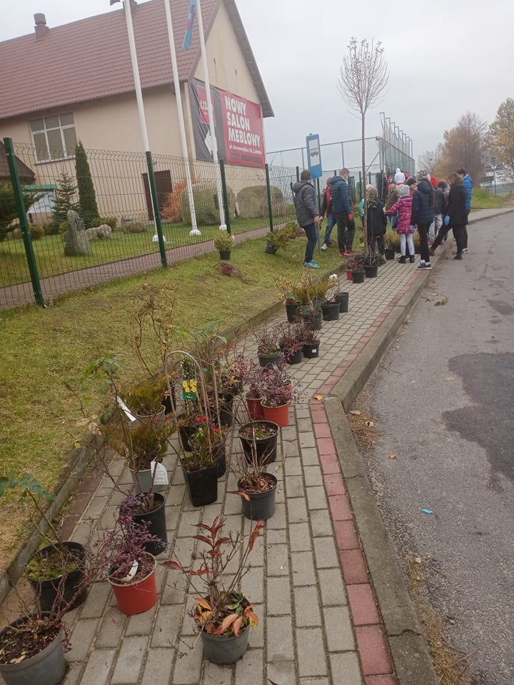 W przyznanych funduszy zakupiliśmy również rośliny, które posadziliśmy przy zatoczce autobusowej (wiśnia umbraculiferi, cis, krzewuszka, berberys, trzmielina, irga, róże).
