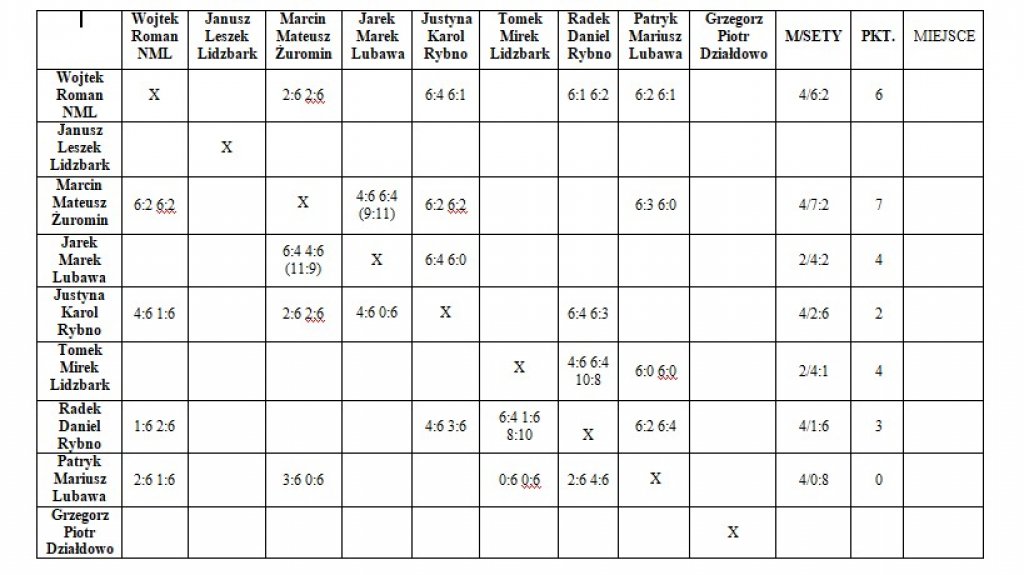 W lidze tenisa ziemnego udział bierze dziewięć par z: Lidzbarka, Żuromina, Lubawy, Działdowa, Nowego Miasta i Rybna. Zawodnicy grają w sesjach, w których spotykają się trzy pary grając systemem „każdy z każdym”. Tenisiści rozegrają w sumie 36 meczów, które zadecydują o ostatecznej klasyfikacji, natomiast w tenisie stołowym łącznie odbędzie się 30 meczów. Zgłosiło się 20 zawodników z gminy Rybno. Zawodnicy grają systemem "każdy z każdym". Spośród zawodników zostanie wyłoniona najlepsza 12, która walczyć będzie o miejsce na podium.