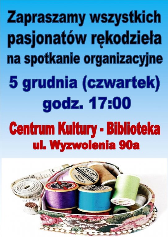 Gminna Biblioteka Publiczna w Rybnie zaprasza na spotkanie organizacyjne Koła Rękodzieła.