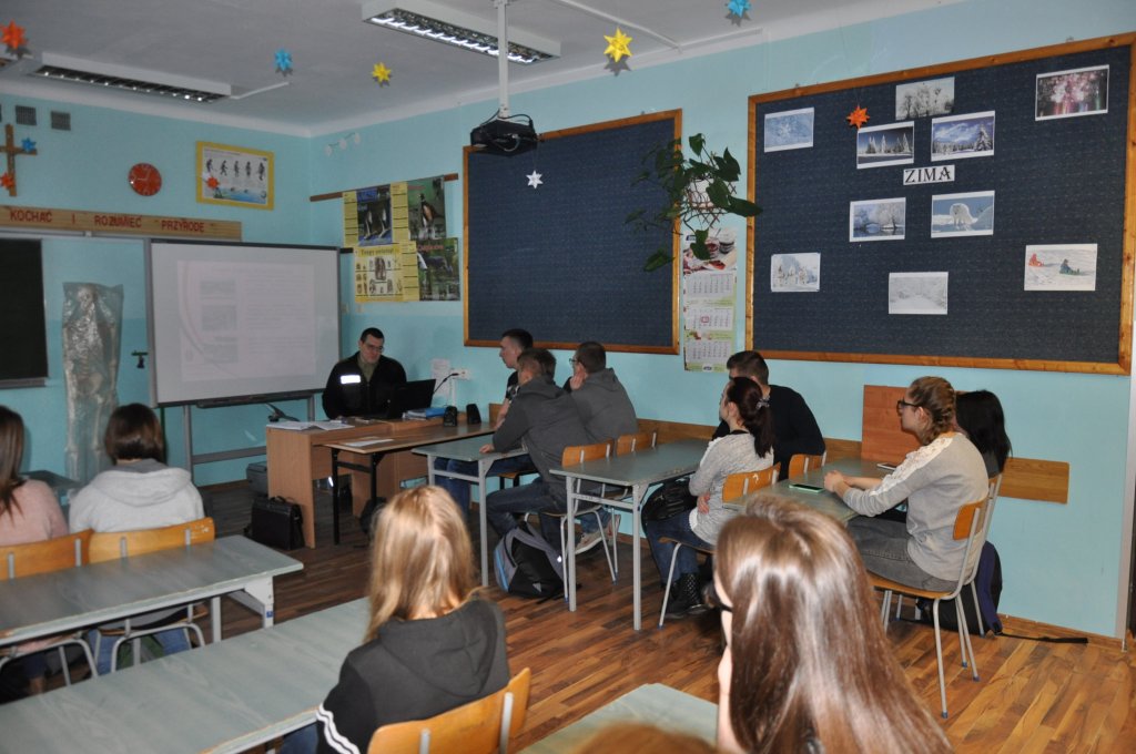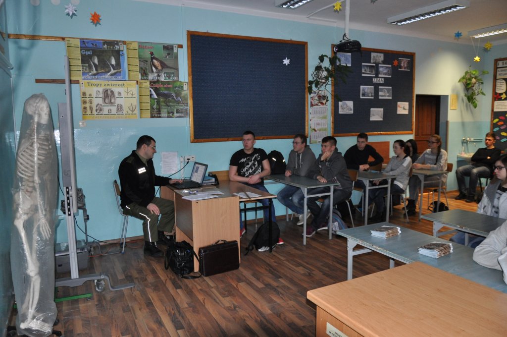 W środę, 11 stycznia w Zespole Szkół w Rybnie odbyło się spotkanie młodzieży liceum i szkoły zawodowej z funkcjonariuszem straży granicznej – panem podporucznikiem Sergiuszem Gazdą.