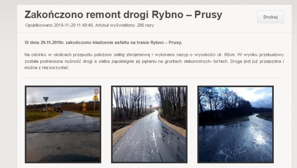 Sprostowanie informacji „Zakończono remont drogi Rybno-Prusy".