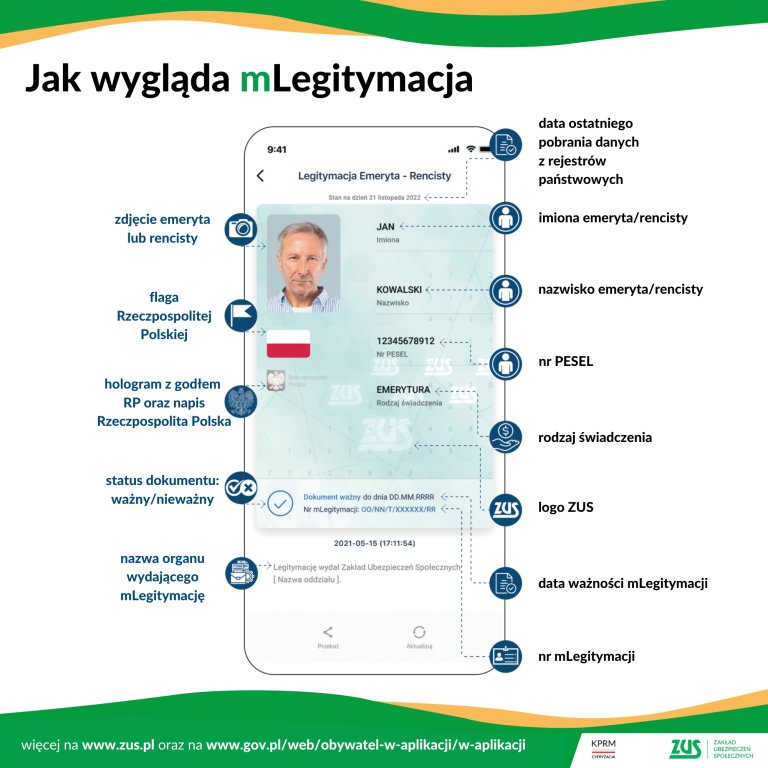 Więcej informacji na stronie internetowej ZUS: https://www.zus.pl/swiadczenia/emerytury/mlegitymacja.