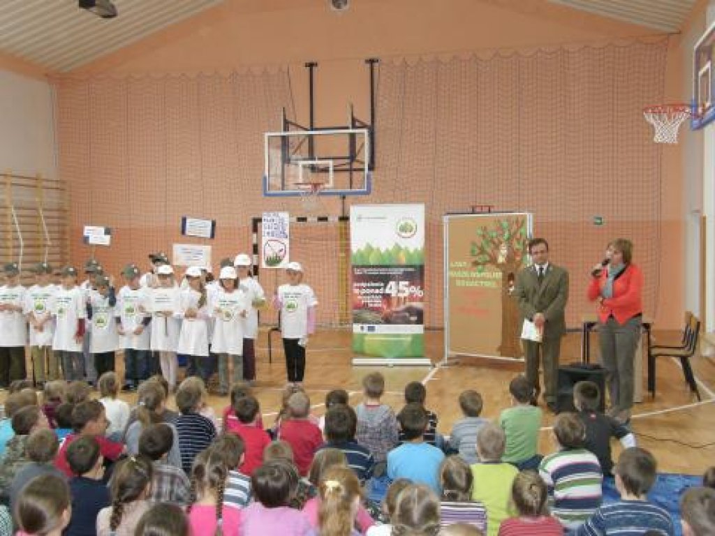 Uczniowie otrzymali przekazane przez Nadleśnictwo Lidzbark koszulki i czapki z logo kampanii oraz płyty o treści informacyjno-edukacyjnej i broszury.