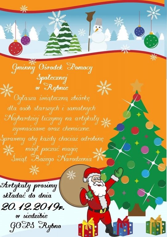 Artykuły prosimy dostarczać do Gminnego Ośrodka Pomocy Społecznej w Rybnie w terminie do dnia 20 grudnia 2019r.