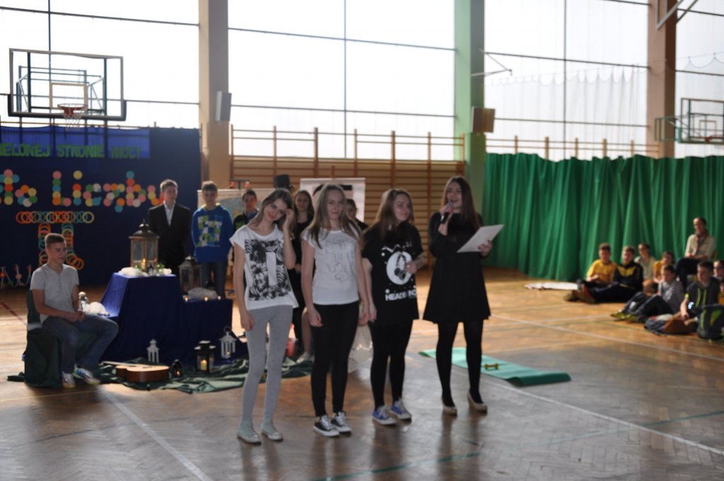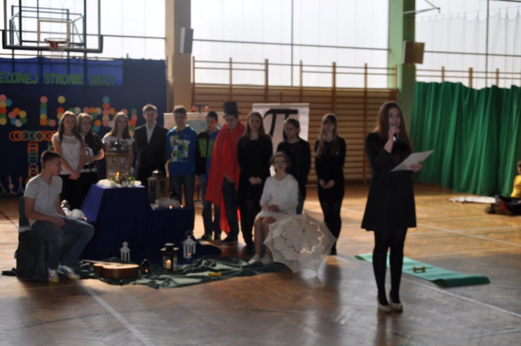W pierwszej części apelu uczniowie należący do „Koła Teatralnego” pod kierunkiem Pani Beaty Ligman zaprezentowali przedstawienie pt: „Uczniowie czasu”. Spektakl uwzględnił ważne treści z obszaru profilaktyki. Następnie uczennice gimnazjum uświetniły całość układem tanecznym z udziałem hula-hop. Przewodnim elementem tańca był okrąg (opiekun grupy tanecznej Pani Hanna Bem).