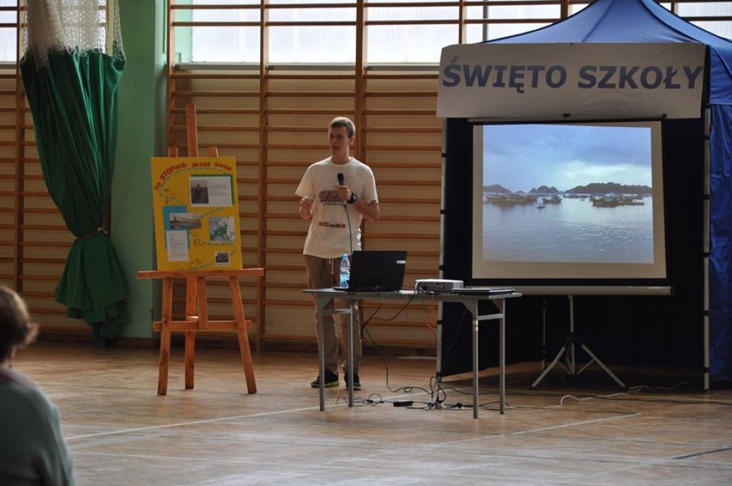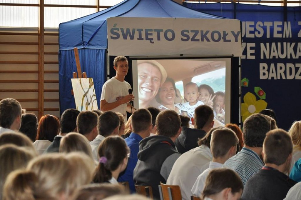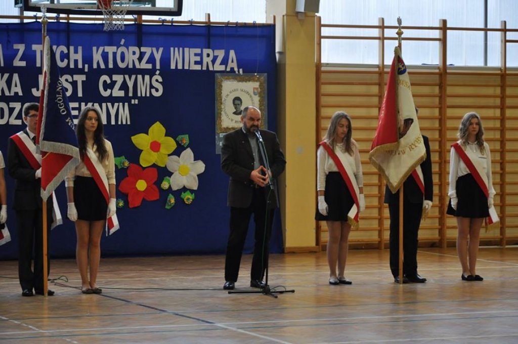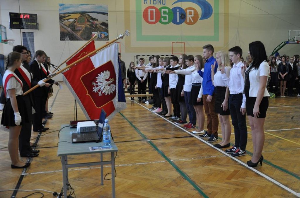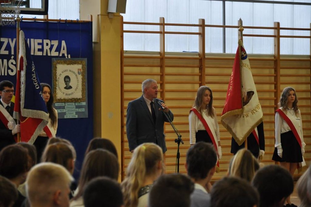 Uroczystość rozpoczęła się apelem w hali sportowej, podczas którego uczniowie klas I gimnazjum i liceum składali ślubowanie, a uczniowie klas I szkoły zawodowej - przyrzeczenie. Następnie głos zabrali: pani dyrektor, Wójt Gminy Rybno i pan Jerzy Anczykowski. Po części oficjalnej w podróż autostopem zabrał zebranych Marcin Miłoszewski – podróżnik z Iławy, który podzielił się z nami swoimi doświadczeniami z wyprawy do Chin.