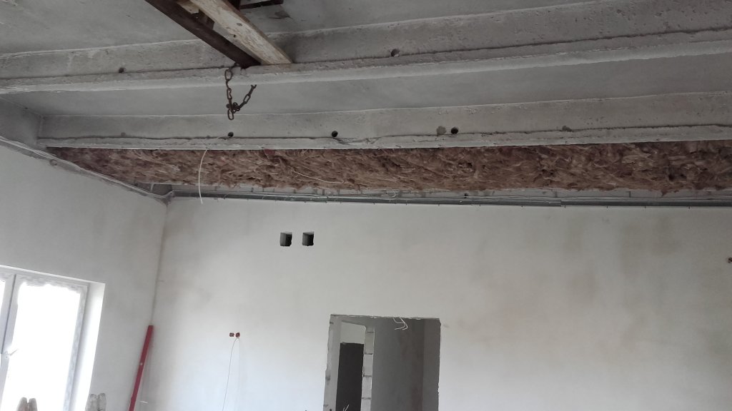 Trwają obecnie prace wykonywania instalacji elektrycznej, zabudowy wiatrołapu oraz termoizolacja i uszczelnienie dachu w miejscowości Szczupliny w ramach inwestycji pn. „Adaptacja pomieszczeń na potrzeby utworzenia Klubu „Senior+".