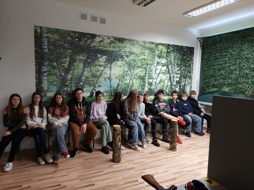 Po przywitaniu i wprowadzeniu na strzelnicę przez Panią Dyrektor Zespołu Szkół Ewę Golder, uczestnicy zostali zapoznani z regulaminem strzelnicy oraz obsługą broni. Następnie wykonali kilka prób strzeleckich z pozycji stojącej, z broni długiej i krótkiej. Strzelnica w Zespole Szkół w Rybnie została oddana do użytku w listopadzie 2023 roku.
