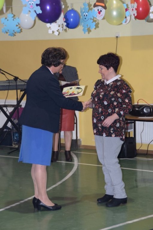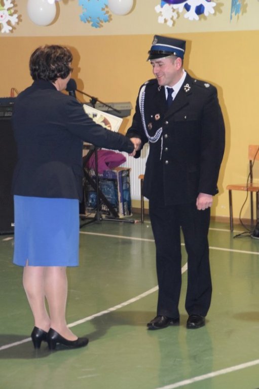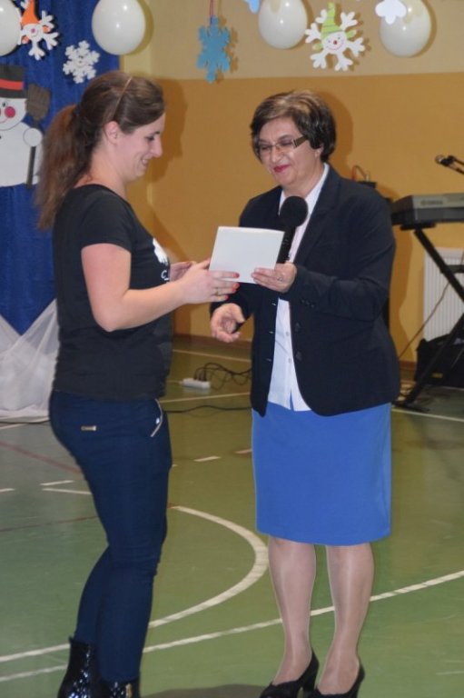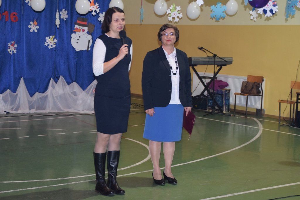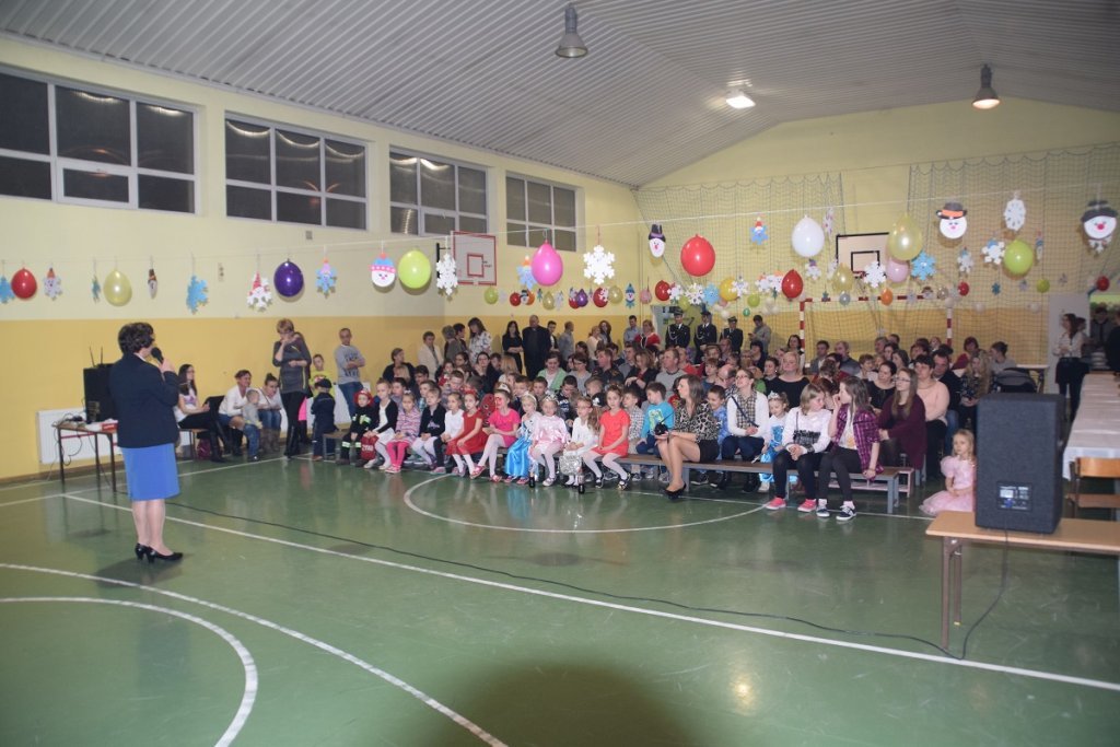 Po powitaniu gości głos zabrała Sekretarz UG w Rybnie – Jolanta Jendrycka, która także wszystkich powitała i życzyła udanej choinkowej zabawy. W trakcie imprezy Ewa Kopańska wręczyła podziękowania osobom, które w ubiegłym roku pomagały szkole oraz poinformowała, że dzięki zorganizowanej przez Radę Rodziców zabawie tanecznej udało się zebrać środki na nowe komputery.