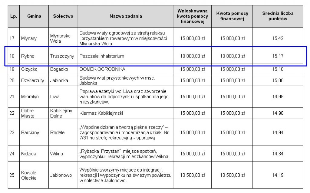 Gmina Rybno otrzymała dofinansowanie w ramach konkursu „Małe Granty Sołeckie Marszałka Województwa Warmińsko-Mazurskiego w 2021 roku”.