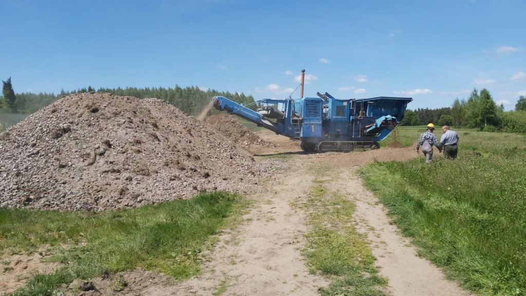 Trwają prace związane z kruszeniem kamieni do naprawy dróg.