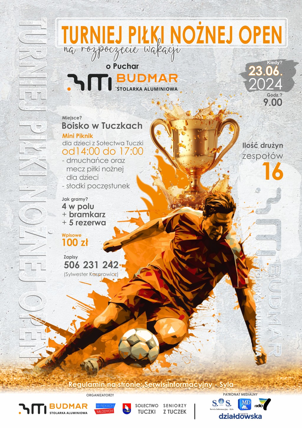 W niedzielę, 23 czerwca 2024 roku o godz. 9:00 na boisku wielofunkcyjnym w Tuczkach odbędzie się II Turniej Piłki Nożnej o Puchar Budmar Producent Stolarki Aluminiowej. W trakcie turnieju przewidziany jest także Mini Piknik dla dzieci z Sołectwa Tuczki w godz. 14:00 – 17:00.